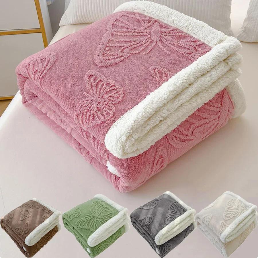 JSoft Warm Coral Fleece Blanket Pink Butterfly Jacquard Winter Thermal Sofa Throw Thick Bed Blanket Nap Knee Small Quilts