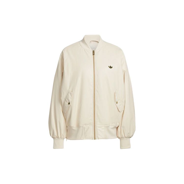 Adidas Originals Gold Zipper Logo Solid Color Bomber Jacket Women Jackets White HG6673
