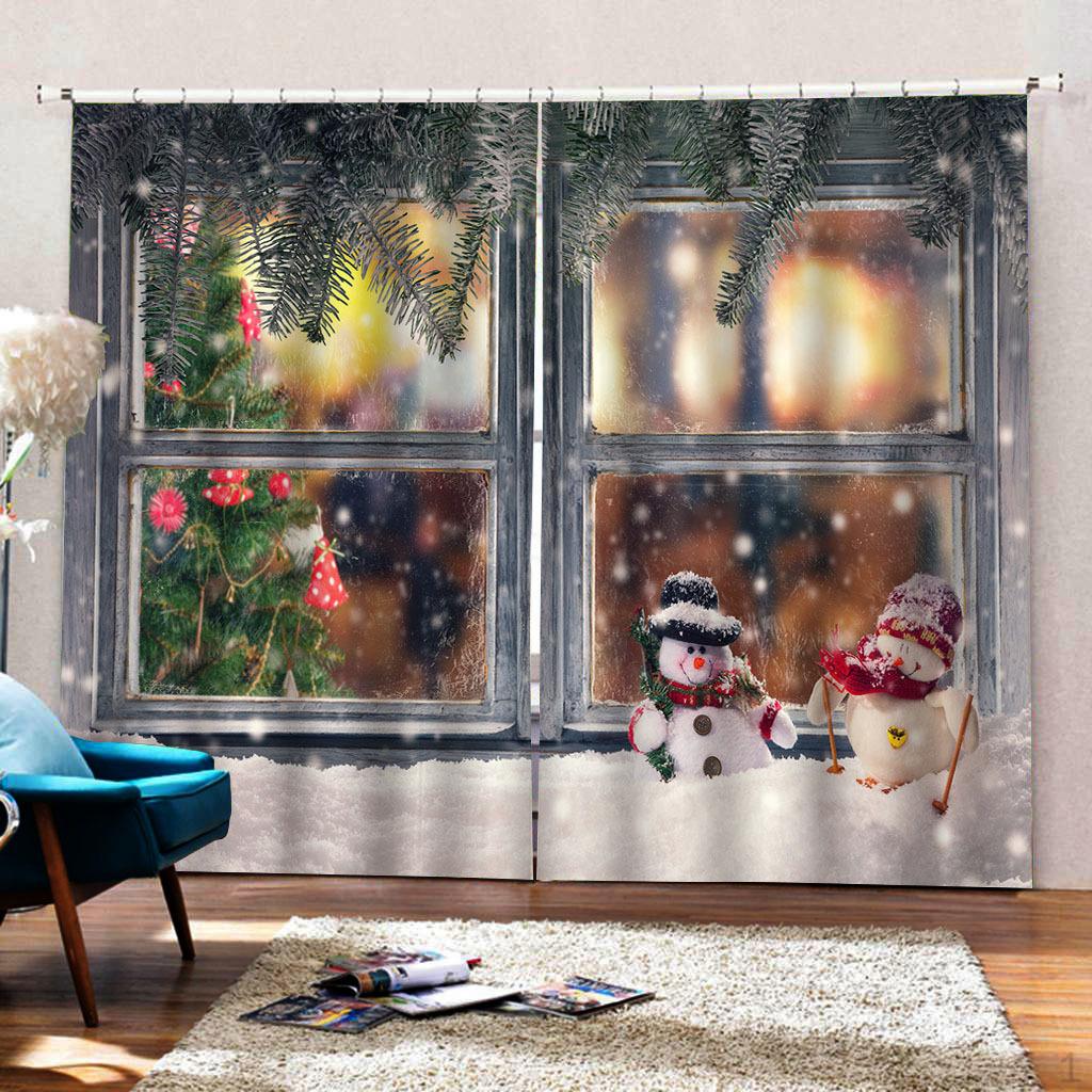 1 Set of 2 Panels 3D Christmas Window Curtains