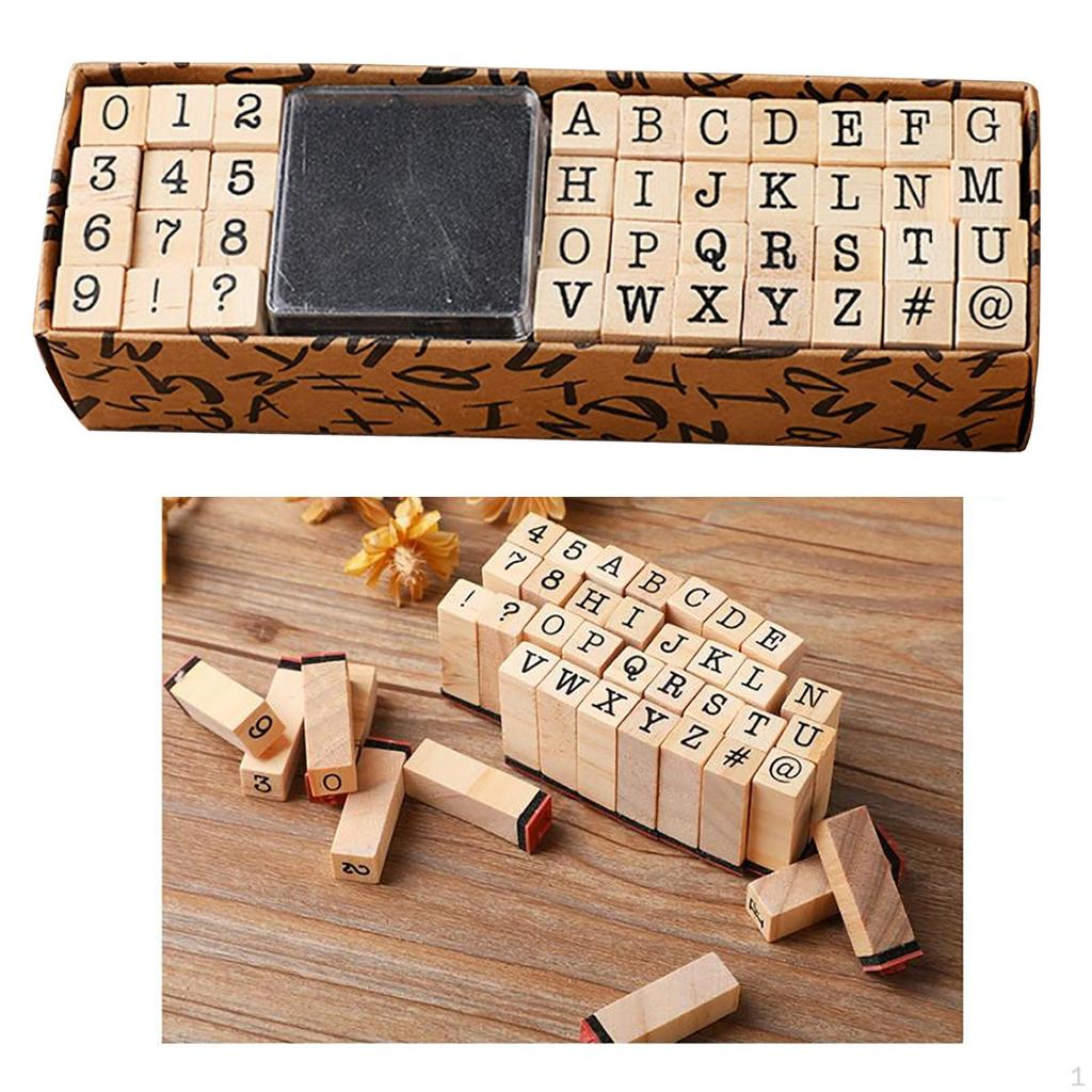 40 Pcs Alphabet Stamps Set, Wooden Rubber Letter Number for DIY Scrapbook, and