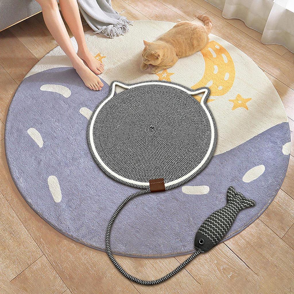 - 【Scratching Pad】: This cat scratching pad is made of quality cotton rope material and cartoon fishy ball, which is tough and rough, bringing fun to their exercise.