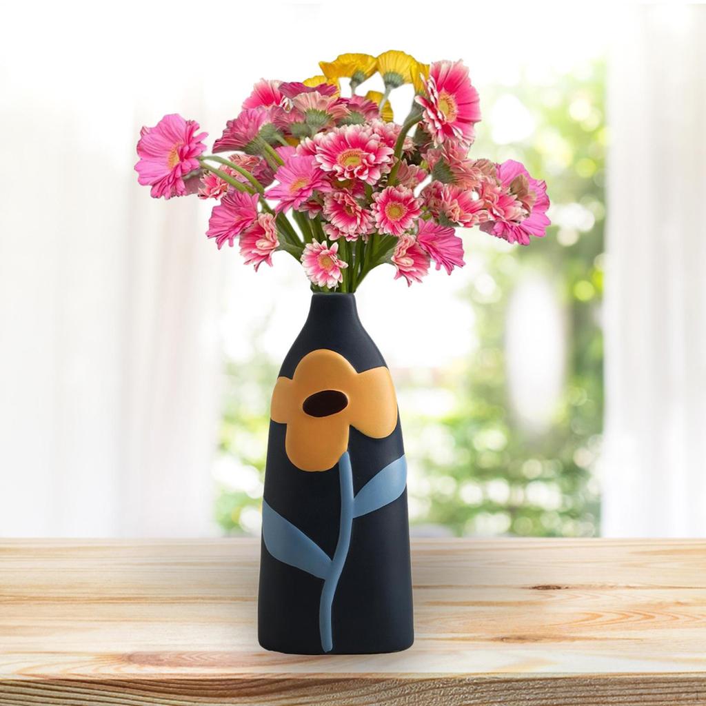 - 【Ceramic Vase】 The ceramic vase features a painted design style. Made of high quality ceramic, it can be used as a decorative flower vase in your indoor home, living room, it is a simple elegant decor.