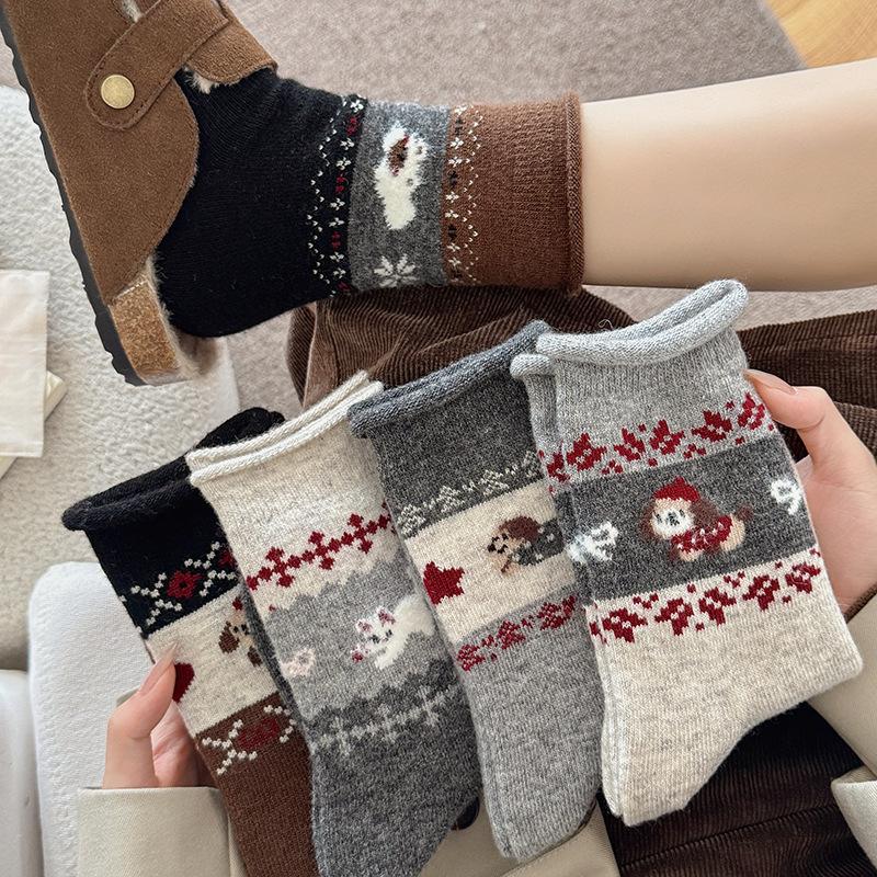 Woolen Warm Fair Island Mid-calf Women's Autumn and Winter Thickened and Fleece Cute Puppy Long Socks