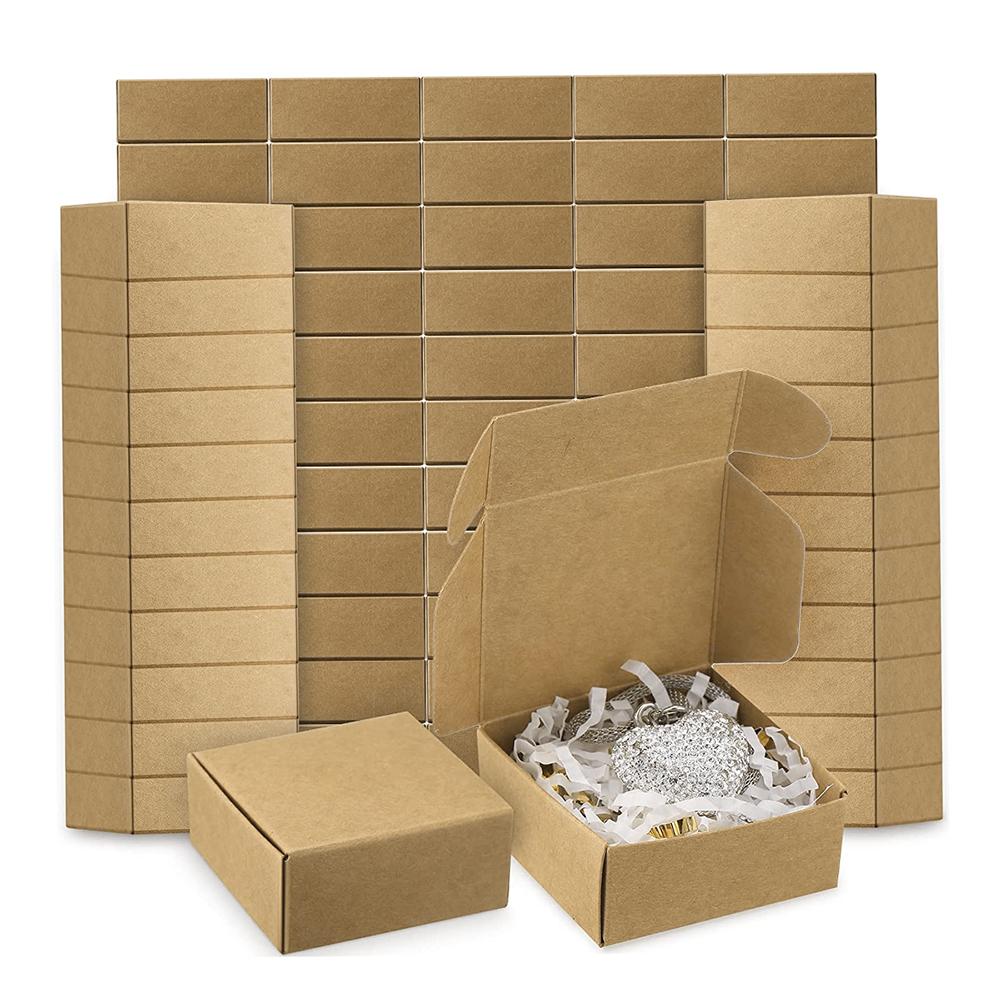 10Pcs Small Kraft Paper Gift Boxes 2.16'' X 2.16'' X 0.98'' for Ornaments Earring Jewelry Wrapping Packaging Cardboard Boxes