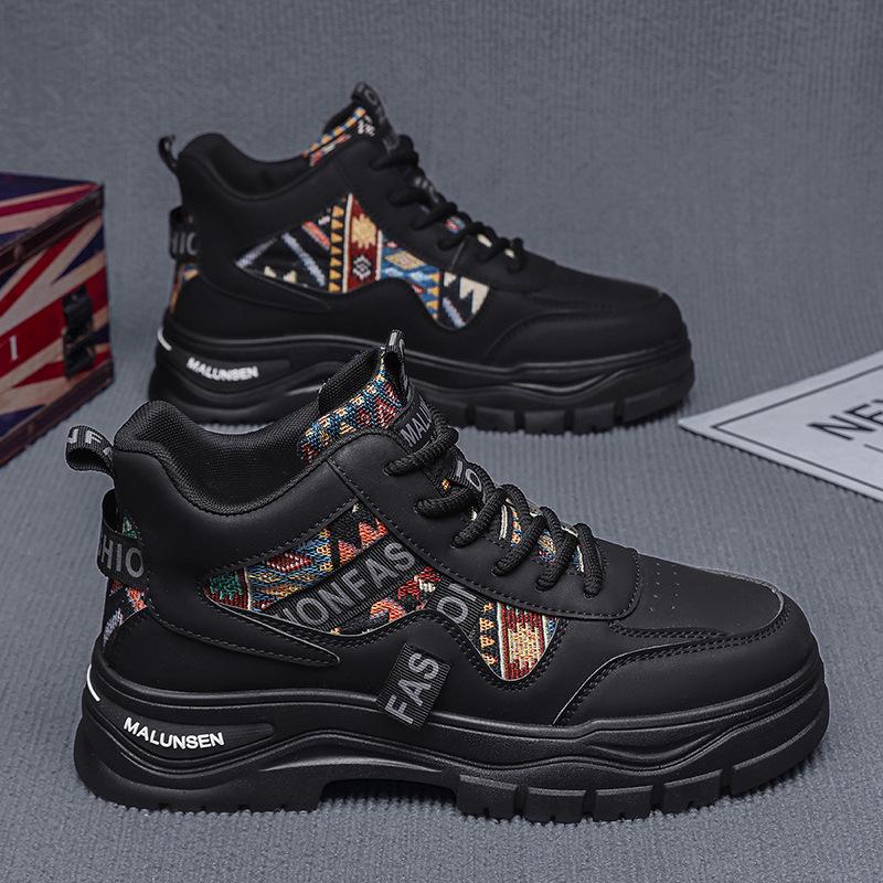 Men's High-Top Chunky Sneakers Lace-Up Non-Slip Casual Platform Shoes Boots