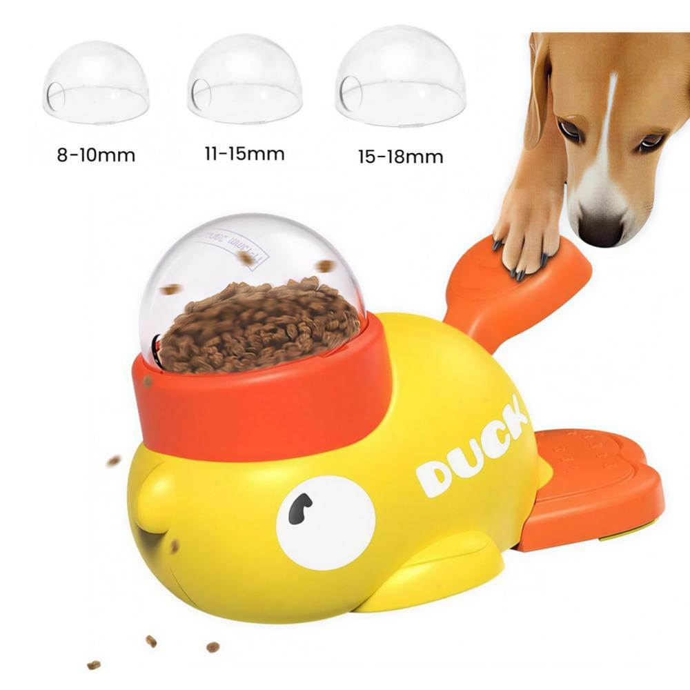 The yellow duck-shaped treat dispenser encourages interactive play, enhancing your dog's mental stimulation.