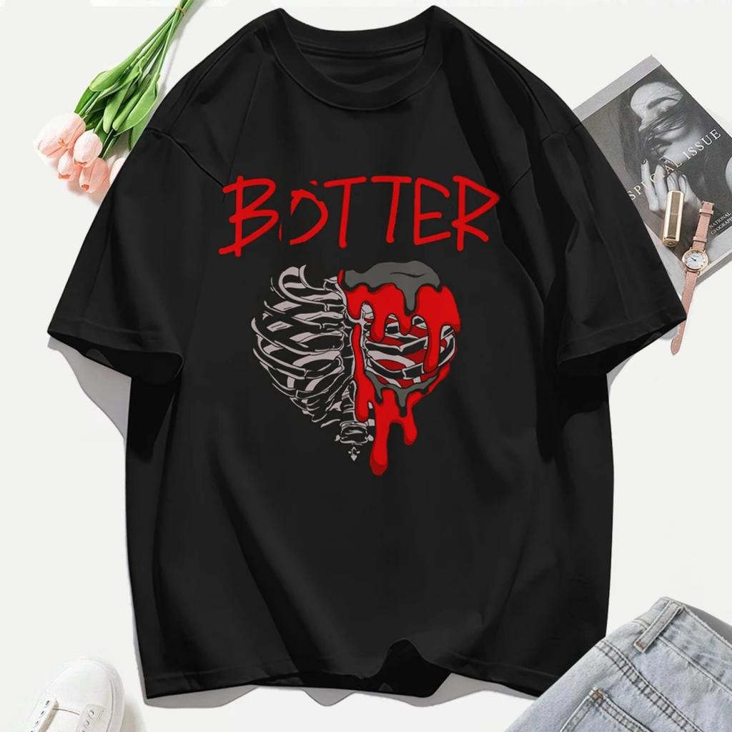 Better Heart Skeleton Design Women T-Shirt Hip Hop Multicolor Clothes All-Match Cotton Tee Shirt Oversized Casusal Woman Top