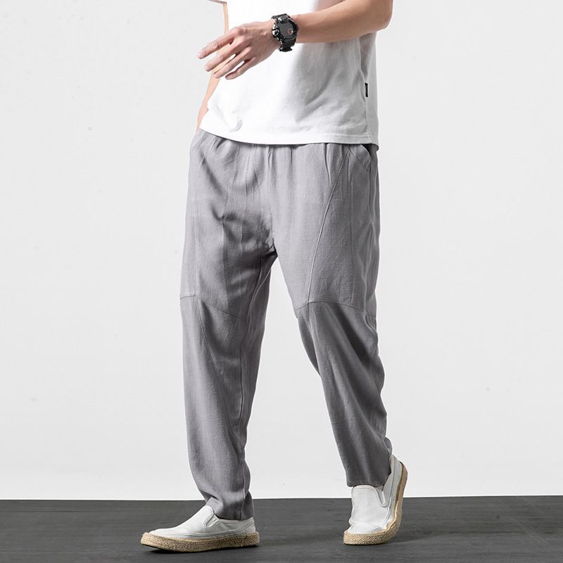 Japanese-style Thin Men's Linen Pants, Casual Pants, Cotton and Linen Lantern Pants for Teenagers, Large-sized Loose Wide-leg Pants