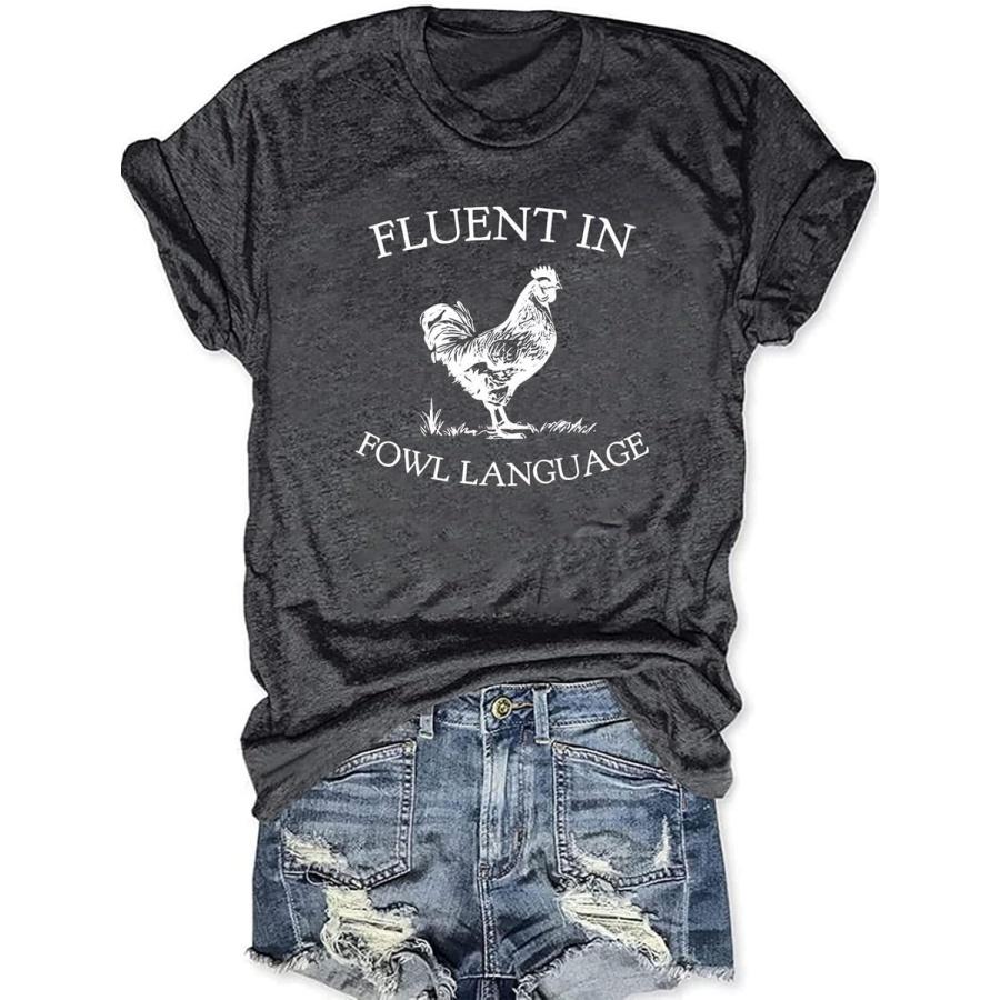 Chicken Shirts for Women Funny Fluent In Fowl Language Graphic Tee Tops Chicken Lovers Short Sleeve Shirt Tees