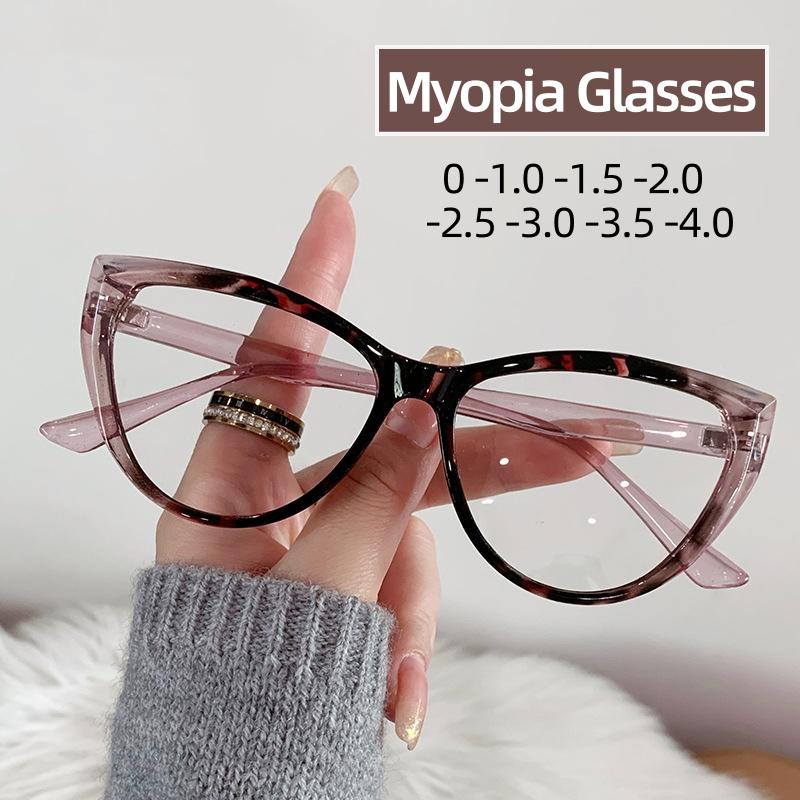Women Cat Eye Myopia Eyeglasses Fashion Trendy Anti-blue Light Near Sight Glasses Female Vintage HD Lens Minus Eyewear 0 To -4.0