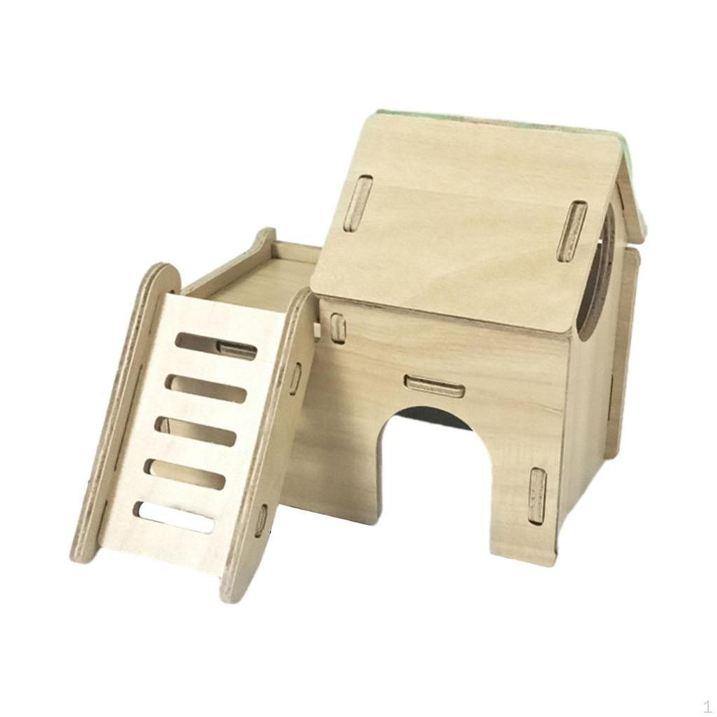 - 【Durable Material】: Hamster House is made of high quality wood material, smooth and rounded edges, no burrs, strong and durable, easy to clean, can be used long time.