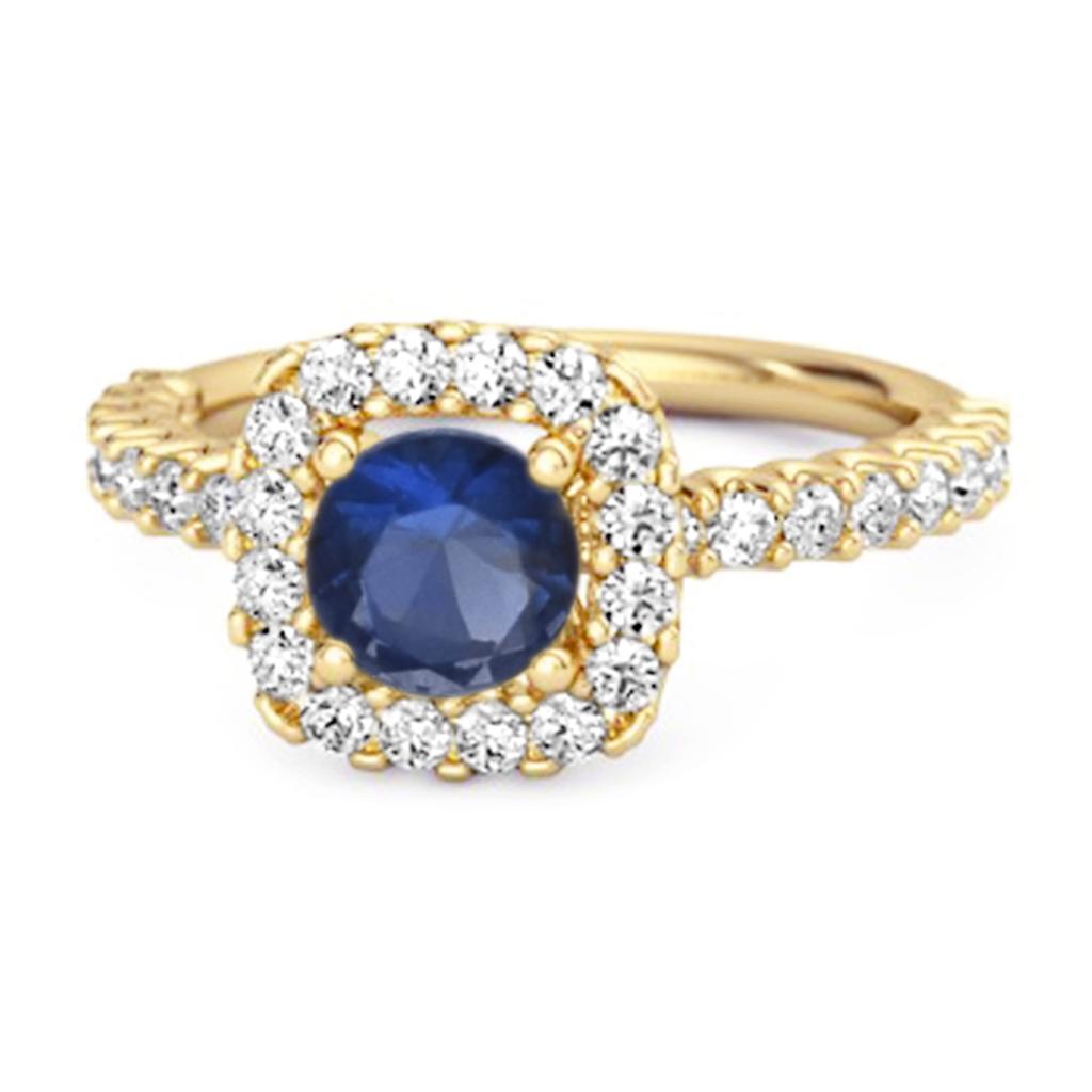 925 sterling silver cushion halo ring with 0.69 ct total weight featuring a 4mm round blue sapphire. A regal and elegant ring perfect for daily wear or September gifting.