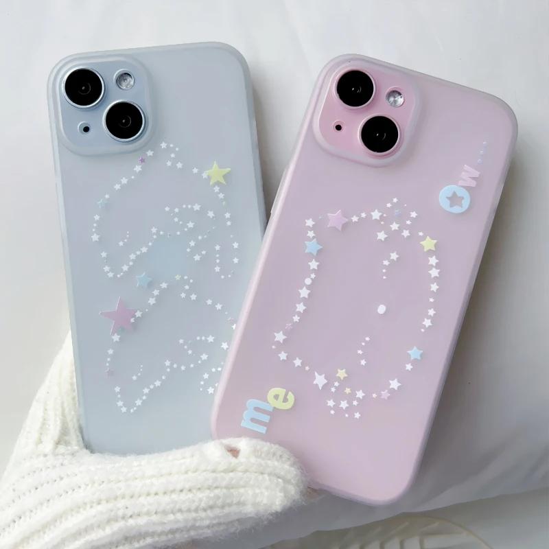 Lovely Korean INS Cat Dolphin Cute Phone Case for iPhone 16 Pro 15 14 13 12 11 Promax Plus Luxury High-end Minimalism Back Cover