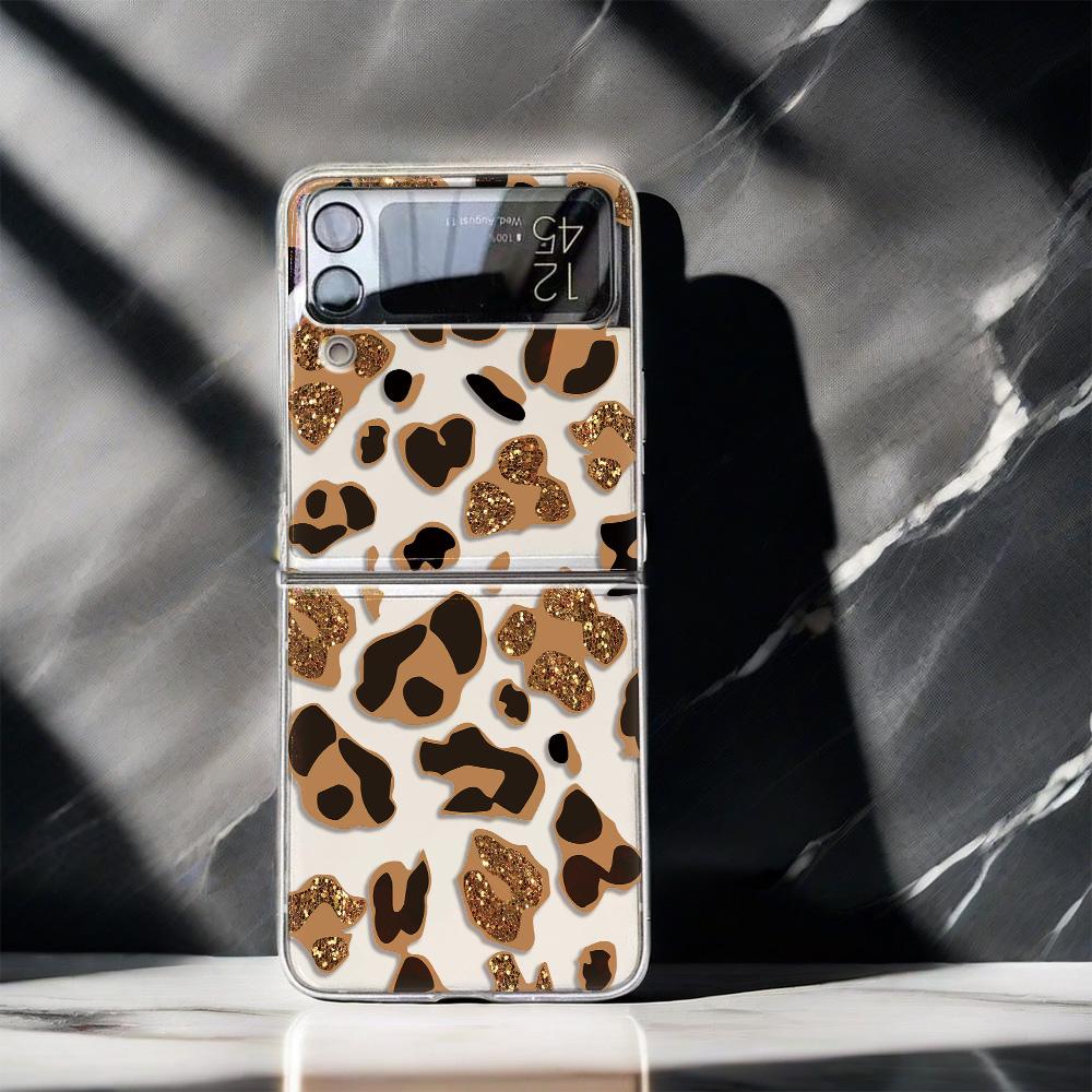 Golden Leopard Print F711 Phone Case For Samsung Z Flip 3 4 5 6 Cases Funda For Samsung Z FLIP 3 4 5 6 Cover Case Funda Coque