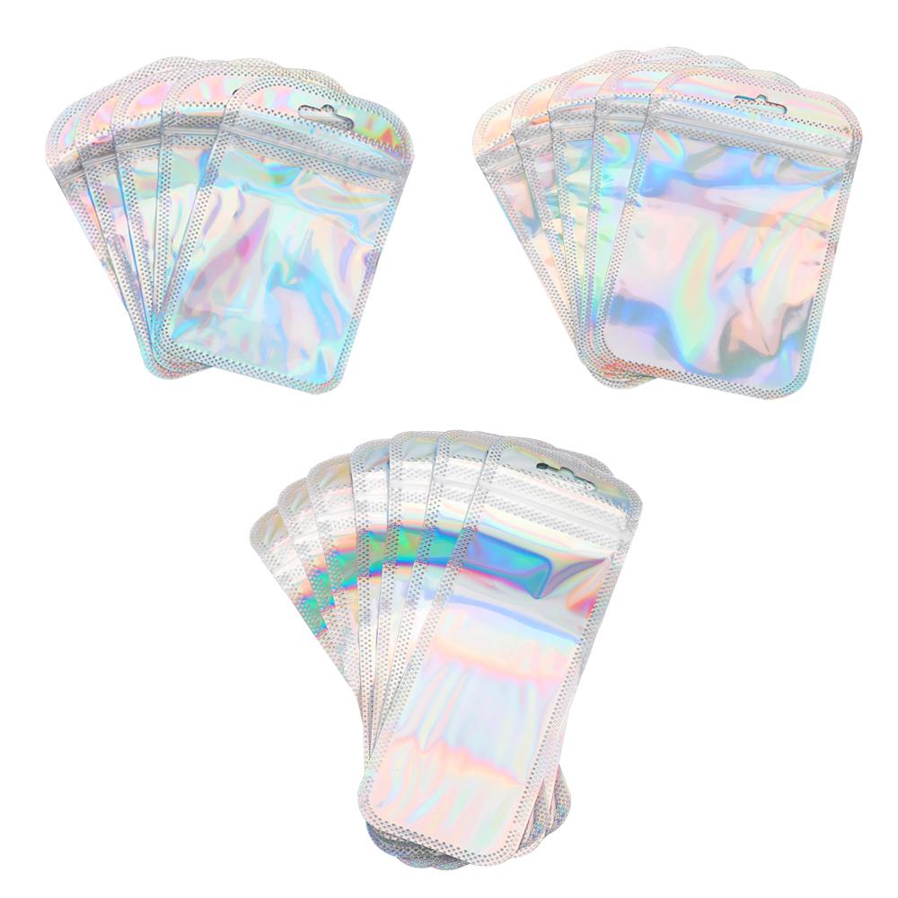 50pcs Iridescent Laser Self Sealing OPP Bags Holographic Bags Zip Lock Bags Resealable Jewelry Retail Packaging Bags 3 Sizes