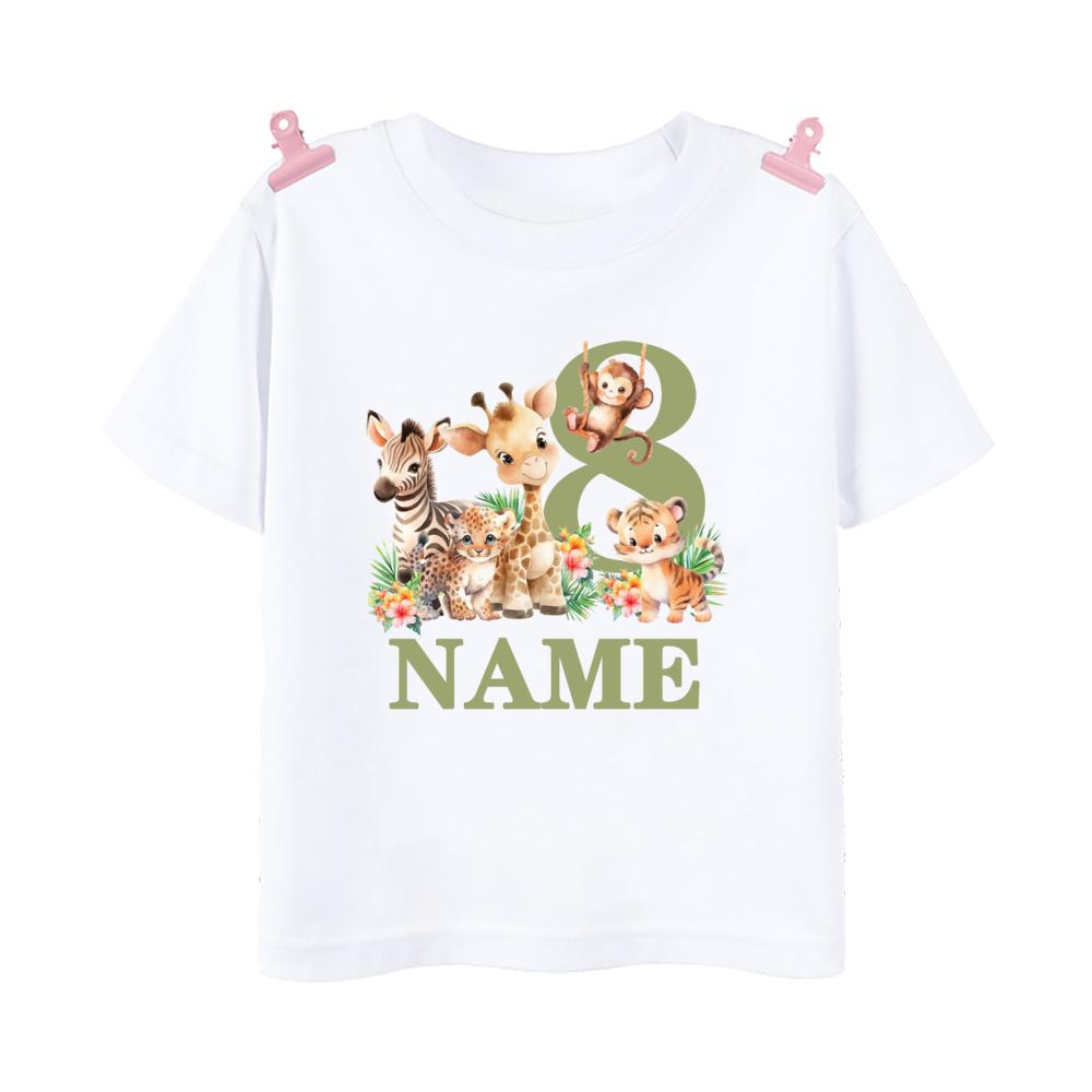 Wild Personalized Birthday Shirt 1-9 Years Shirt Tee Boys Jungle Party T-shirt Safari Animal with Name Clothes Kids Gifts Tops