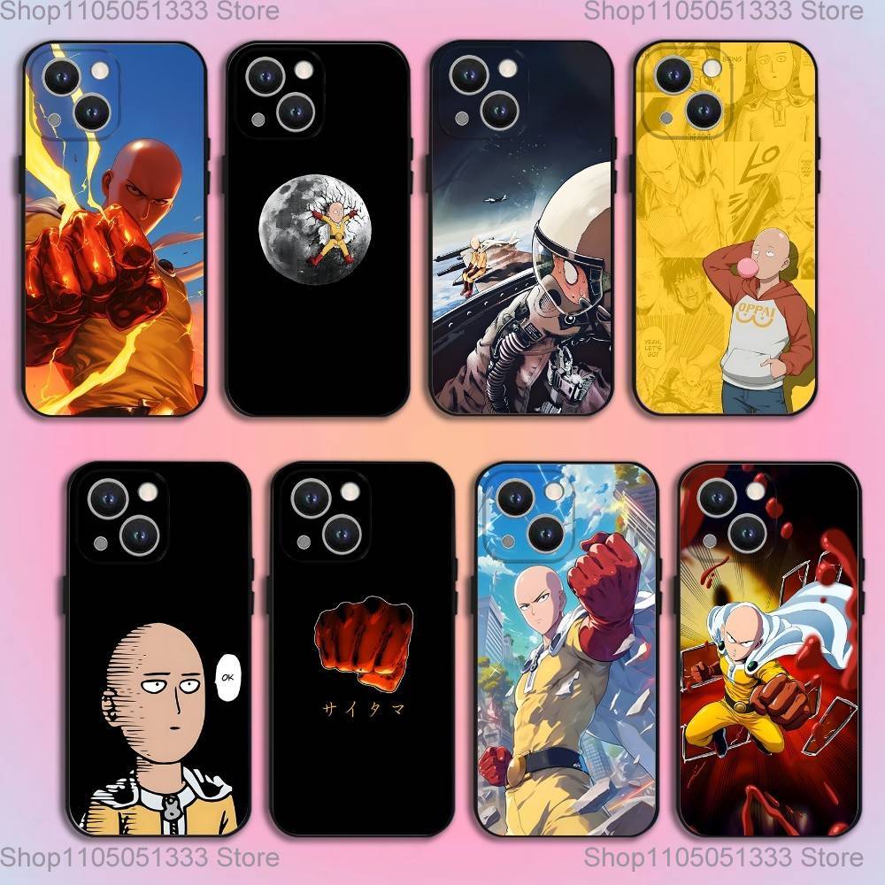 One P-Punch Man Saitama Phone Case For iPhone 16,15,14,13,12,11,Pro,XS,Max,XR,Plus,E,SE4,Mini Black Soft Cover