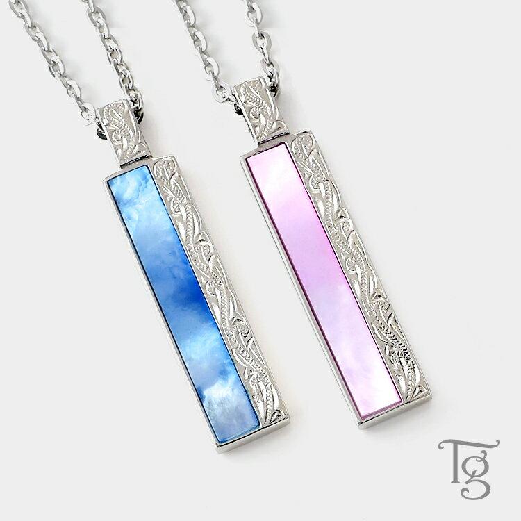 Gift-compatible Hawaiian jewelry pair necklace in surgical stainless steel 316L with glossy blue and pink color shell.