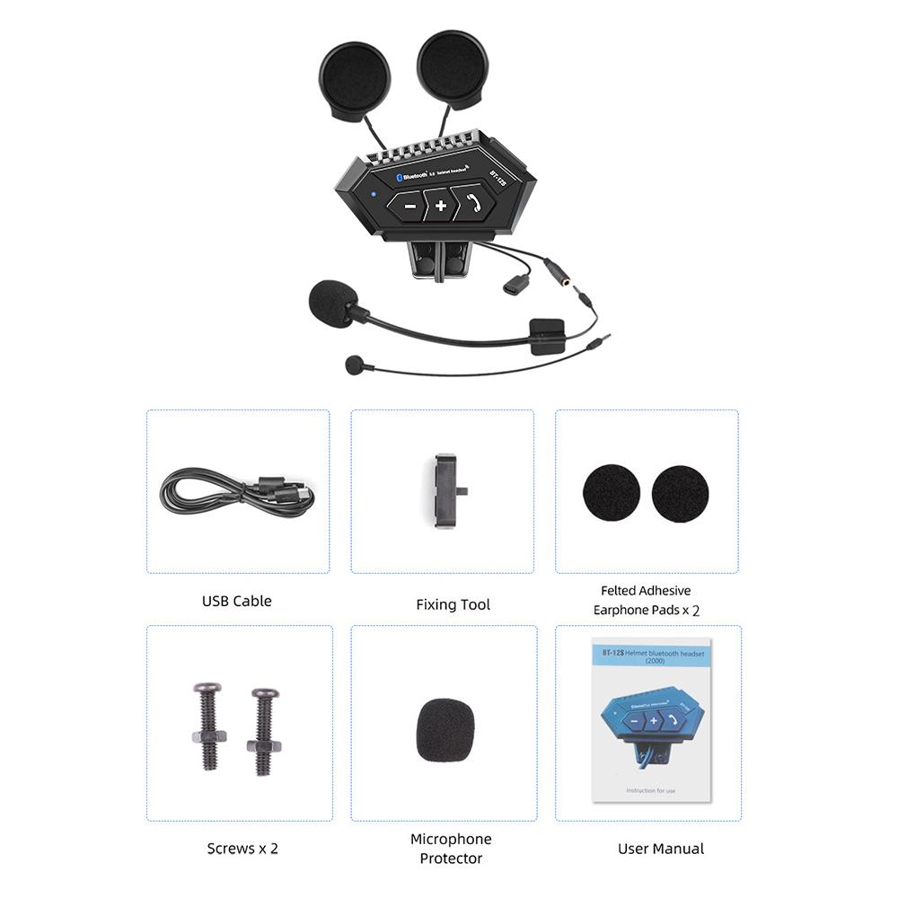 Motorcycle Helmet Headset Bluetooth 5.0 Wireless Earphones 2000mah Battery Anti-interference Handsfree For Full/Half Face Helmet