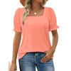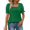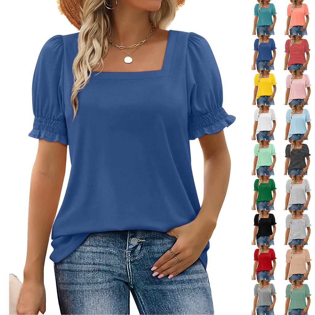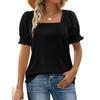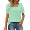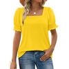 Women's Fashion Square Neck T-Shirt With Petal Sleeves And Short Sleeves