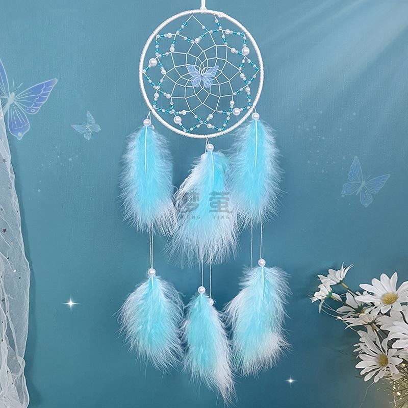 Butterfly Dream Catcher Pink Feather Pendant Creative Hand-woven Bedroom Curtain Hanging Ornaments Birthday Gift Home Decoration