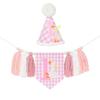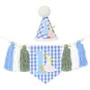 1st Birthday Highchair Banner Goose Theme Blue Ginghams Tassel Banner Hat Photo Prop for Boy Girls Birthday Party Decorations