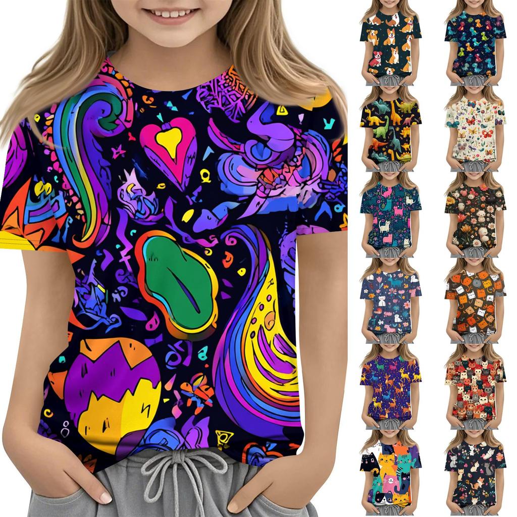 Children's Printed Round Neck Short Sleeved Casual T-shirt
