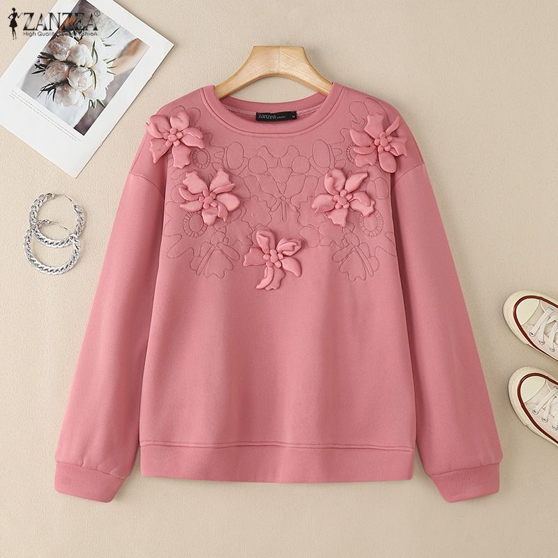 ZANZEA Women Casual Round Neck Loose Long Sleeve Sweatshirt