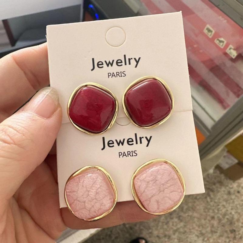 Retro Square Stud Earring for Women Korean Simple Enamel Geometry Temperament Jewelry Girlfriend Gift
