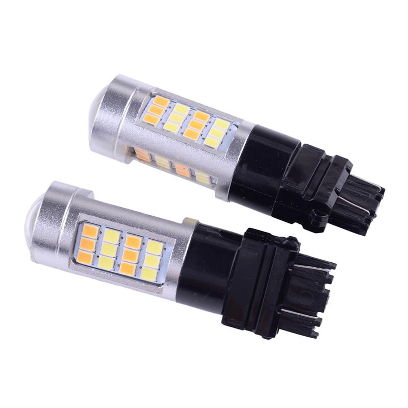 2Pcs Error Free White Amber 3157 LED Switchback DRL Turn Signal Parking Light Bulbs DC 12V