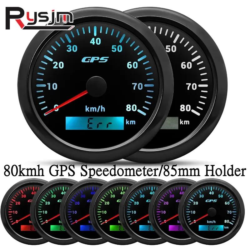 HD 85mm GPS Speedometer 0-80Km/H Speed Odometer Gauge 7 Colors Backlight for Marine Boat Car Truck 85mm Diam Holder(Option)
