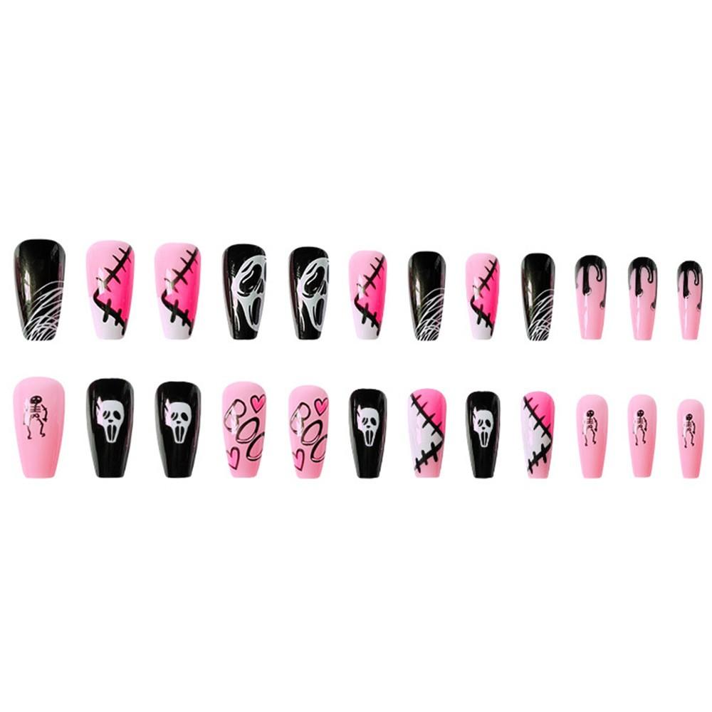 24pcs Head False Press Nails Women's Clear Heart Toe Nail Patches 10ml