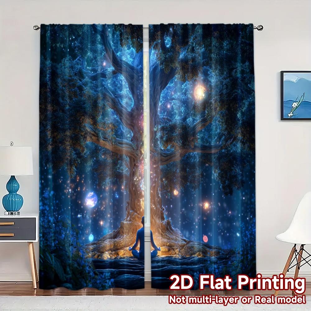 2pcs 2D FLAT PRINTING Curtains (Without Rod) Celestial Harmony Chic Curtain Cloth Yarn Curtains Holiday Ldeal for Bedroom
