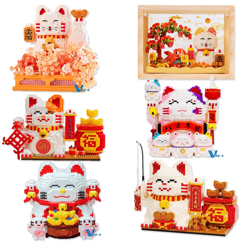 Kawaii Maneki Neko Mini Building Blocks Assembled Cartoon Lucky Cat Bricks Model Wealthy Cat Block Toy Figures For Gift