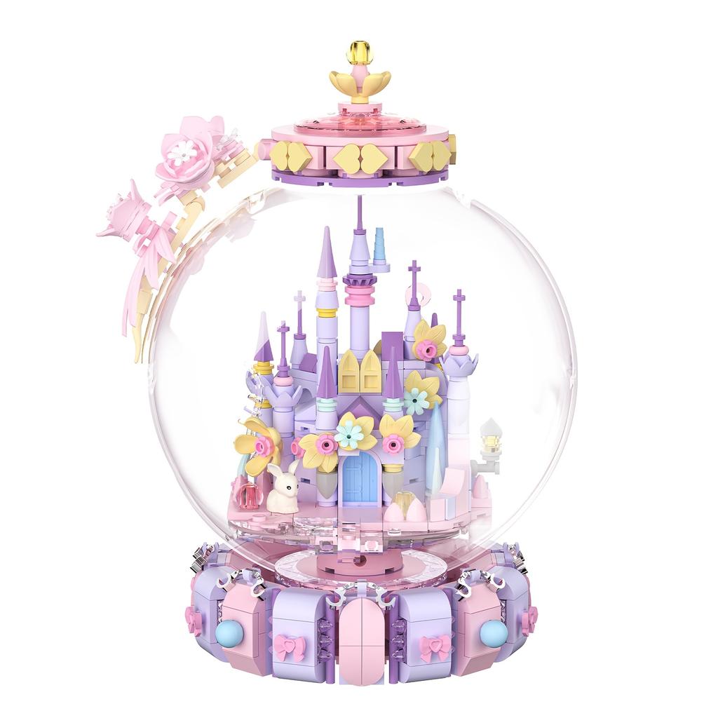 Fairy Tale Crystal Ball Castle Blocks Pink Puzzle Toy Magical Orb Floral Gift for Girls Birthday Christmas Gift for Youngster