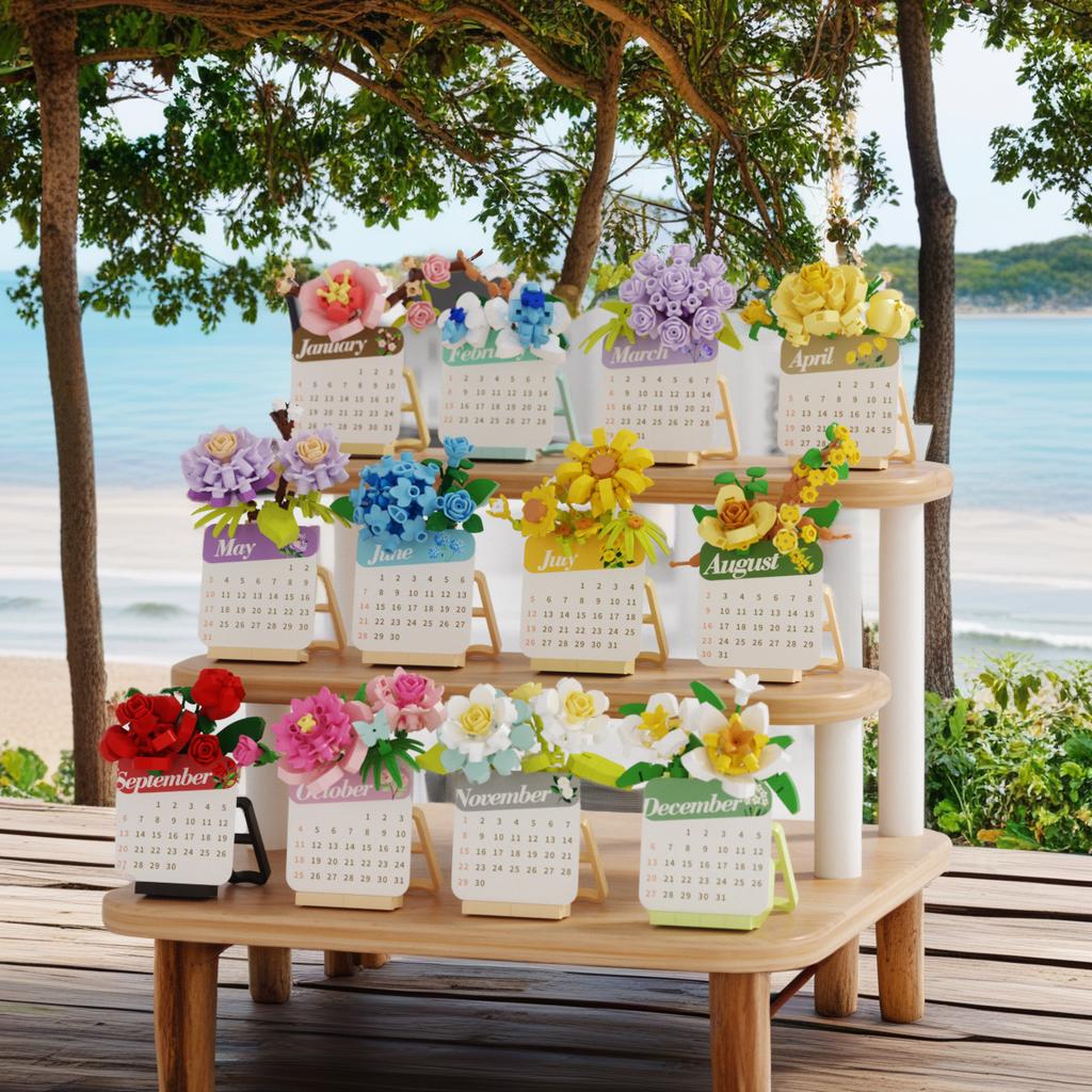 Flower Advent Calendar Block Mini Building Set for Children Girl 12 Year Old Mirco Brick Particle Building Blocks Desktop Model
