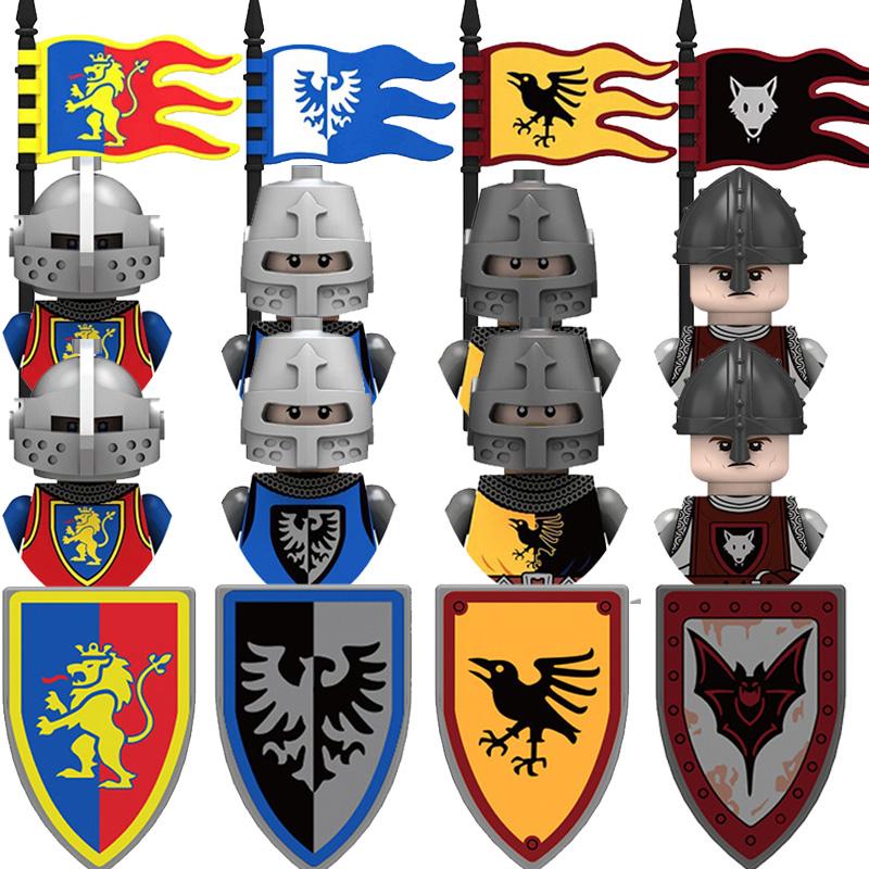 Medieval Knight Armored Troops Ancient Army Soldiers Mini Weapon Equipment Flag Model Building Blocks Kids Toys Birthday Gifts