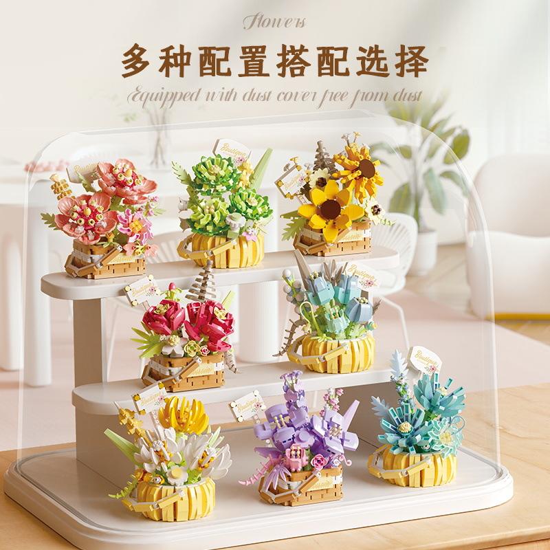 Rose Flower Figure Mini Block 3D Model Bricks Figures Toy Bouquet Micro Building Blocks Assembly Toy For Kids Girl 8 To 14 Years