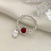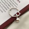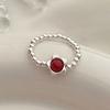 PONYKISS Sterling Silver Agate Flower Bell Bead Elastic Rope Rings for Women Cute Fine Minimalist Accessories