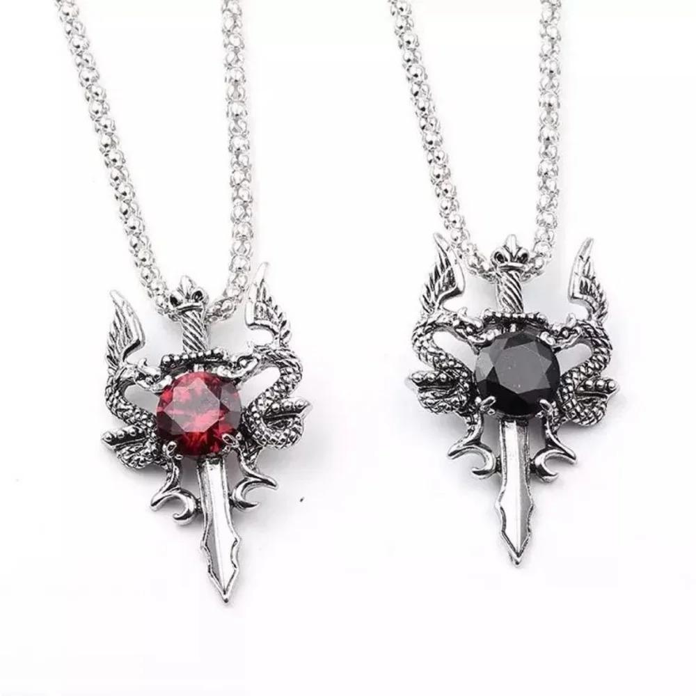 Punk Gothic Sword Womens Ancient Silver-color Evil Dragon Gem Pendant Necklace Personalized Fashion Street Sweater Chain