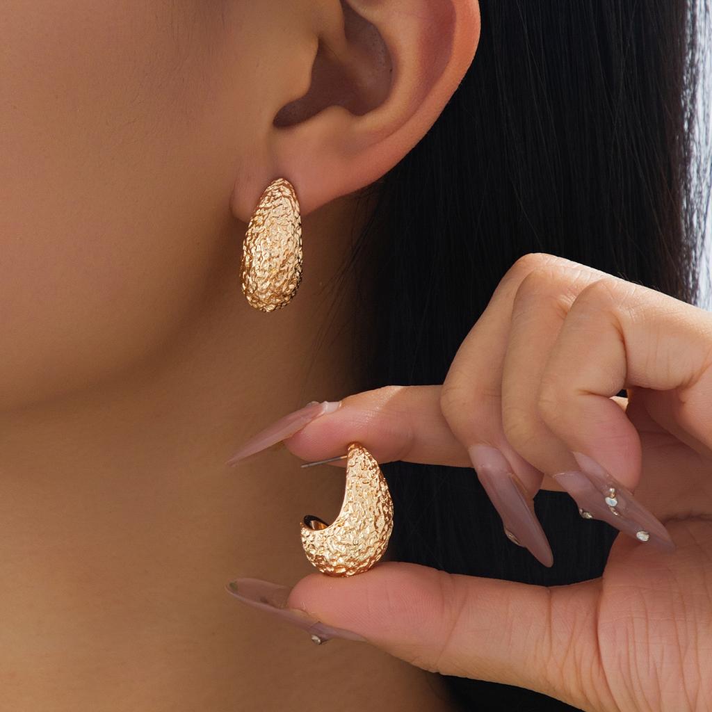 Elegant Wrinkle Gold Color Waterdrop Earrings for Women Fashionable Commute Style Earrings Daily Wear Party Gifts