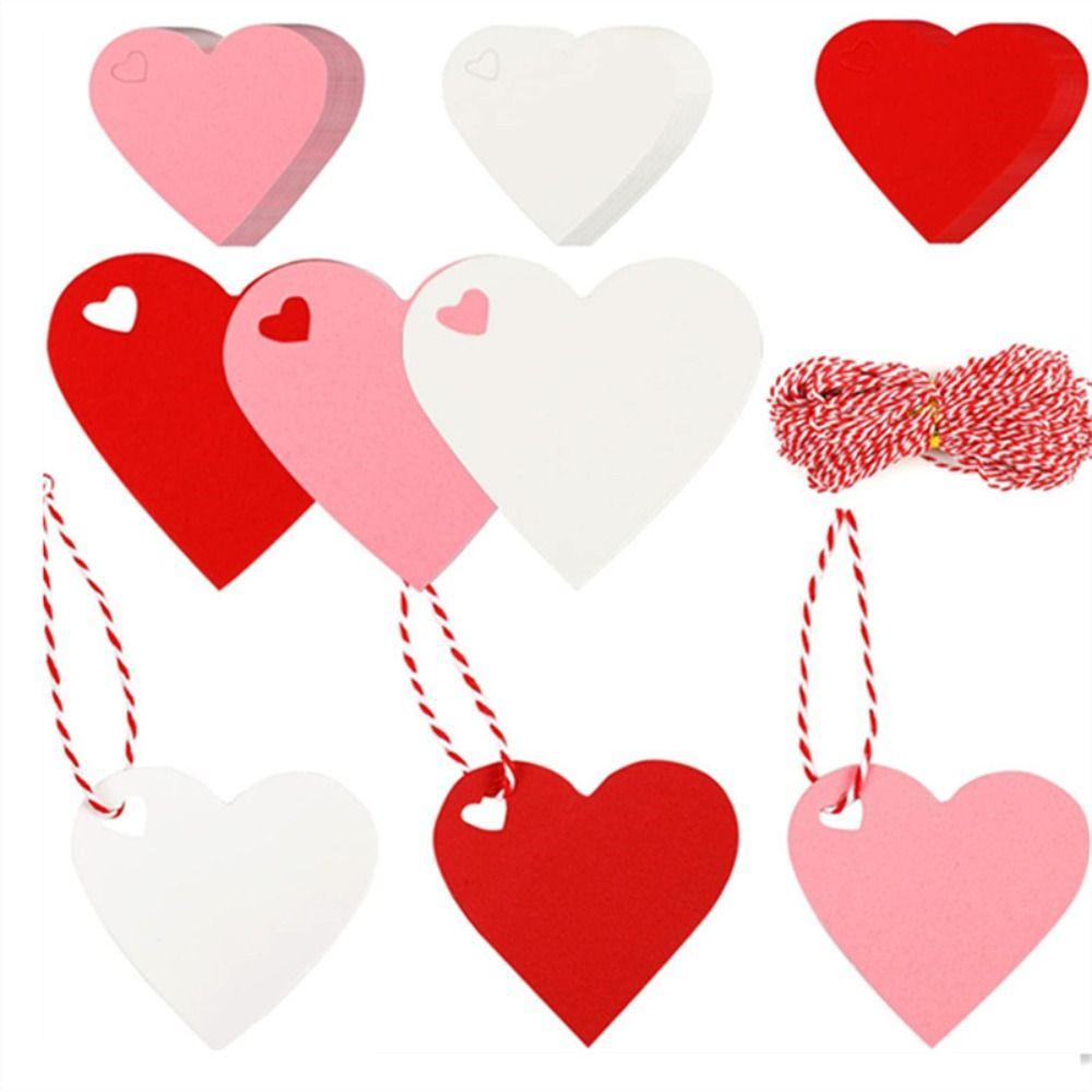 100pcs DIY Valentine's Day Tags Heart Shape Blank Hanging Decoration Gift Labels Red Pink Paper Gift Hanging Tag