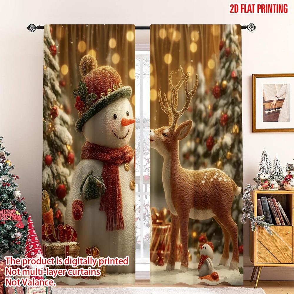 2pcs 2D Flat Printing Christmas Hot Curtains Animal Print Christmas Winter Digital Printed Polyester Drapes Family Party