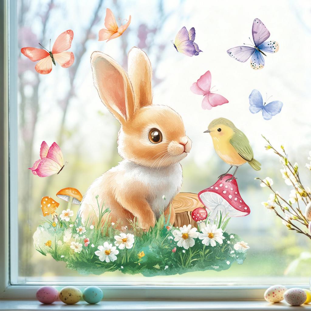 Easter Bunny Window Clings Cartoon Egg Stickers Cute Decoration For Home Classroom Nursery Shop Glass Display Decorations