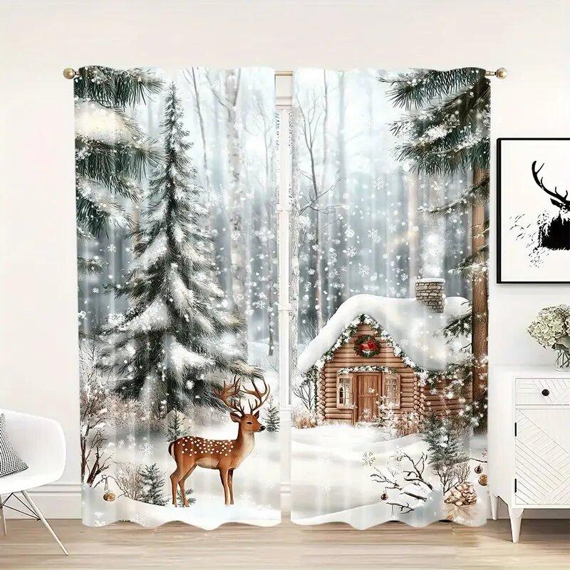Christmas Reindeer Curtains Pole Bag Curtains Bedroom and Living Room Decoration Home Decoration Christmas Decoration