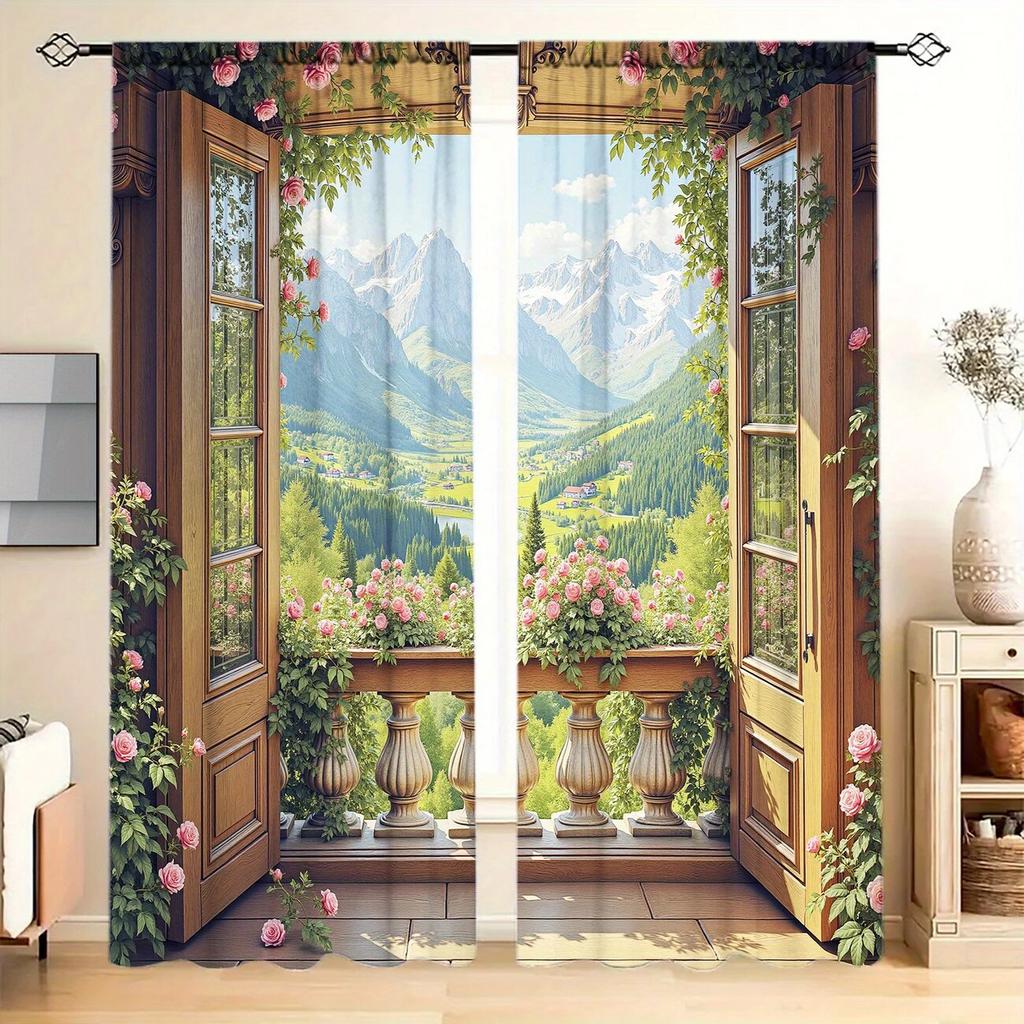 2pcs- Realistic Fresh Garden Printed Curtains Pole Bag Curtains 42*84 Bedroom Living Room Home Room Decoration
