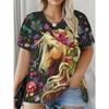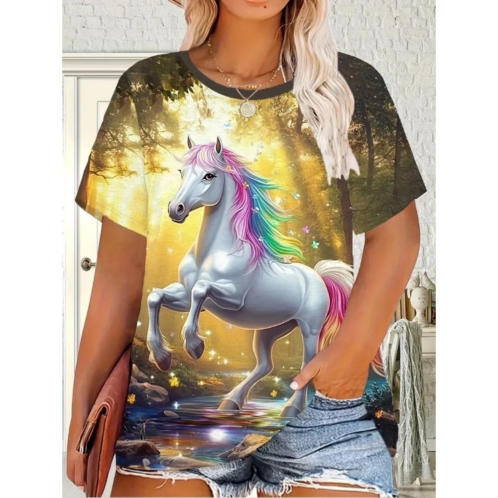 Summer Fashion Loose Oversized Breathable Soft Comfortable Horse 3D Printing Casual Women's Short Sleeve T-Shirt