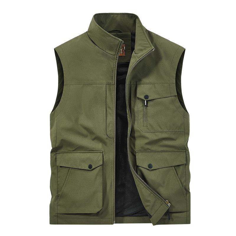 Men's Clothing Solid Color Pocket High Collar Zipper Sleeveless Cardigan Workwear Sports Vest Fashion Top