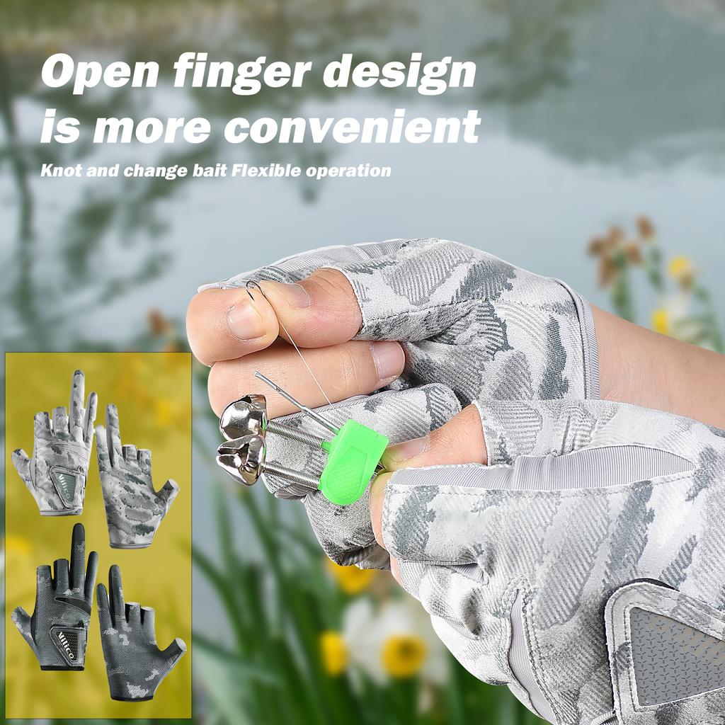 1 Pair Fishing Gloves for Men Summer Fishing Road Sub Sunscreen and Anti Slip Ice Silk Breathable Thin Three Finger Cut Gloves