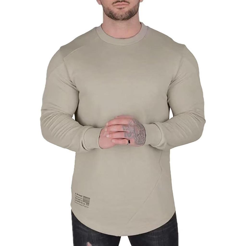 Mechieng Men's Long Sleeve Training T-Shirt, Light Khaki, Size M, for Gym and Strength Training